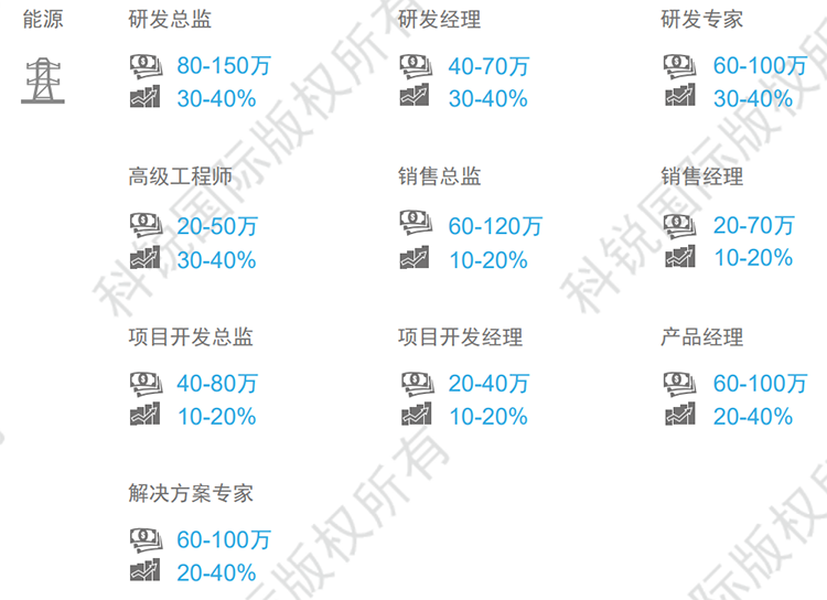 薪酬趋势:行业整体薪酬趋稳,自然涨幅在8-12%,跳槽涨幅在20-30%。能源互联网领域资深人才紧缺,部分职位薪资涨幅可达50%,甚至更高(文中部分数据是猎头公司Ezpay钱包国际专家顾问的分析预测,供企业和猎头招聘参考)